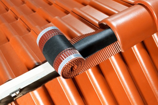 Taśma kalenicowa vRoll jest produktem nowej generacji, dzięki wysokiej dyfuzyjności zastosowanej tkaniny zapewniającym właściwą wentylację przestrzeni pomiędzy pokryciem dachowym a spodnimi warstwami dachu. Kalenica to miejsce, przez które wilgotne powietrze jest wywiewane spod pokrycia dachowego. Jest to bardzo newralgiczny punkt dachu, szczególnie jeżeli dach jest pokryty materiałem o zróżnicowanej wysokości profilu, np. dachówka. Gąsiory zwieńczające kalenicę nie przylegają całą krawędzią do dachówek, więc nie są w stanie zapewnić dostatecznej szczelności. Dlatego pod gąsiory należy zastosować taśmę kalenicową vRoll, która pozwala na odprowadzenie pary wodnej przenikającej przez konstrukcyjne warstwy dachu z użytkowego poddasza i jednocześnie zapewnia ochronę przed wnikaniem wody, śniegu i kurzu. Swoje funkcje wentylacyjne i ochronne taśma kalenicowa vRoll spełnia doskonale również w narożach dachu. Taśma kalenicowa vRoll składa się z dwóch pasów plisowanego aluminium oraz paroprzepuszczalnej tkaniny technicznej. Tkanina wentylacyjna, stanowiąca wewnętrzną część taśmy, ma bardzo dużą powierzchnię wentylacyjną, dzięki temu zapewnia odprowadzenie pary wodnej na zewnątrz i swobodny przepływ powietrza, a ze względu na bardzo małą wielkość szczelin wentylacyjnych - zapobiega przenikaniu pod połać dachu wody, kurzu i pyłu.