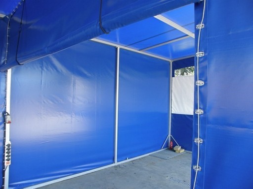 INNY SPOSÓB MONTAŻU KURTYNY TO PLANDEKA PRZESUWANA PO SZYNIE.