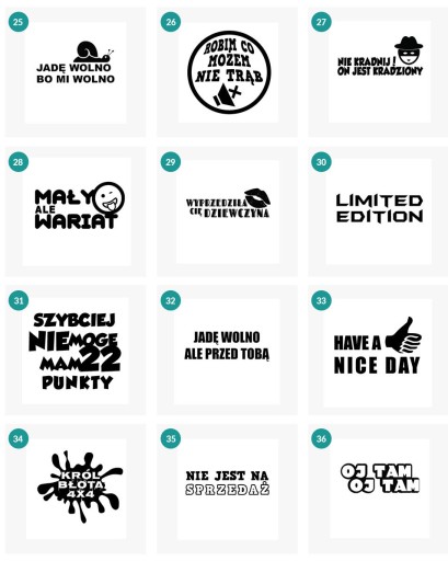 Po dokonaniu zakupu prosimy o określenie w wiadomości do sprzedającego wzoru oraz koloru naklejki.