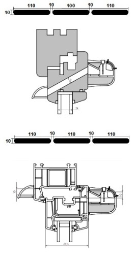 Na rysunku drugim pokazany jest montaż nawiewnika w oknie PCV. Pokazany jest również przekrój otworów przelotowych, wraz z ich średnicą, długością oraz odstępem między otworami.