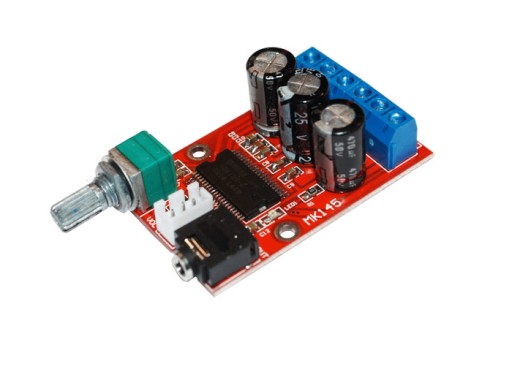 Moduł wzmacniacza audio opartego na układzie YDA138 firmy Yamaha. Moduł posiada złącze wejściowe, dwa wyjścia na głośniki, złącze zasilania.