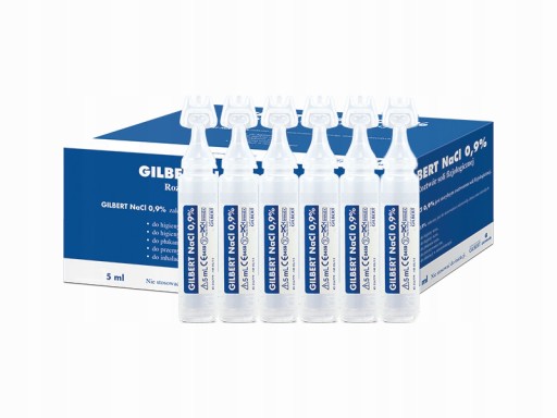 GILBERT NaCl 0,9% jest sterylnym, nie zawierającym konserwantów roztworem soli fizjologicznej dostępnym w postaci jednorazowych ampułek.Nie należy stosować produktu do iniekcji. Bezpieczny, higieniczny i łatwy w użyciu. Sól może być stosowana do codziennego oczyszczania i nawilżania nawet bardzo wrażliwych miejsc, takich jak okolice oczu czy błona śluzowa nosa u noworodków, niemowląt, dzieci i osób dorosłych ze skłonnościami do alergicznych schorzeń skóry, ponieważ roztwórjest neutralny dla organizmu - nie wywołuje podrażnień ani skutków ubocznych.