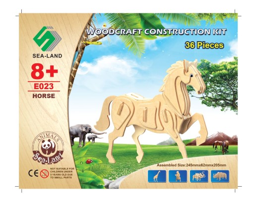 KOŃ-RUMAK - wykonany ze sklejki drewnianej z gotowych powycinanych elementów.Pojedyncze elementy układanki wyciskamy z szablonu i łączymy ze sobą według instrukcji na rysunku poglądowym.W celu utrwalenia składankę można podkleić klejem do drewna i pomalować według własnej fantazji lub pozostawić w stanie naturalnym.Puzzle wykonane są z gotowych powycinanych płytek ze sklejki drewnianej o grubości 3mm i wymiarach