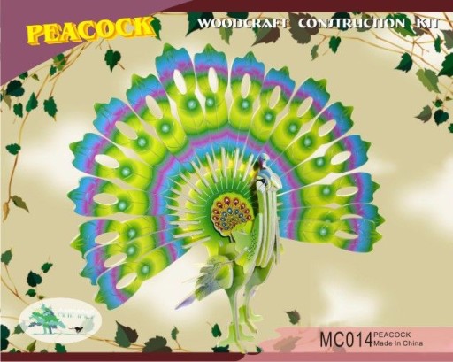 ДЕРЕВЯННАЯ 3D ПРОСТРАНСТВЕННАЯ ПАЗЛ ПАВЛИН ПТИЦА ЦВЕТ