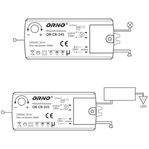 - Możliwość podłącznie bezpośredniego (max. 500W) lub do zasilacza LED-owego.
