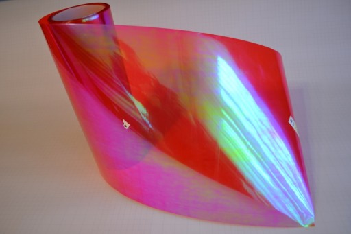 Folia przyciemniająca samoprzylepna, typu kameleon czerwony o właściwościach termoplastycznych.