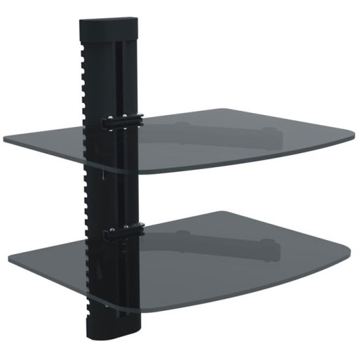 Uniwersalna półka szklana ścienna, może służyć jako podstawa pod sprzęt RTV - odtwarzacz DVD, Video, dekoderów satelitarnych, konsoli gier video i podobnych.