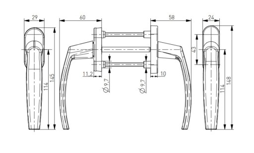 UNIWERSALNA KLAMKA DWUSTRONNA DO DRZWI BALKONOWYCH PCV, ALUMINIOWYCH I DREWNIANYCH WYKONANA Z METALU