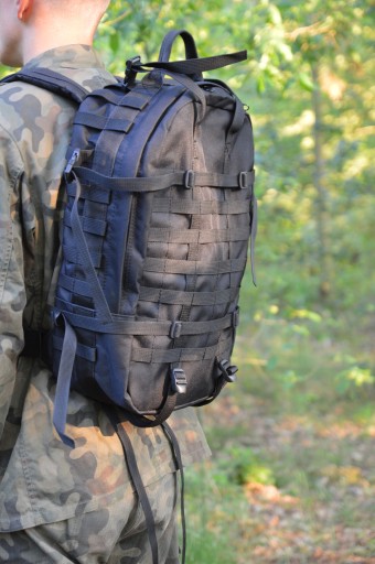 Plecak szyty z bardzo dobrej jakości impregnowanej tkaniny miejscami trzy warstwowej i przy wysokim standardzie wykonania. Plecak jest sztywny, wyprofilowany i wytrzymały co docenili najbardziej wymagający klienci, setki naszych plecaków jest użytkowany w jednostkach i szkołach wojskowych.