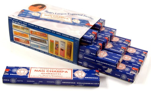 Jest to specjalna mieszanina naturalnych ziół, żywic, kwiatów i olejków, ręcznie rolowane. Ich bogata, naturalna woń będzie poprawiać samopoczucie. Kadzidełka Nag Champa uważane są za najlepsze, naturalne kadzidła. Każde kadzidło waży ponad 1 gram, oraz pali się ok 1 godziny. Opakowanie zawiera 12 kartoników po 15 gram kadzidełek w każdym kartoniku (około 15 pałeczek) łącznie daje to 180 gram kadzidełek.