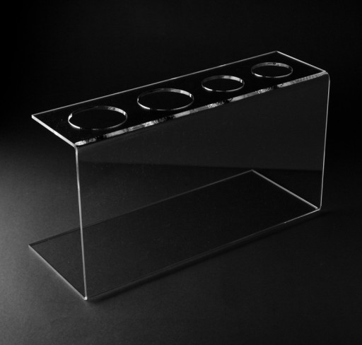 Stojaki dzięki laserowemu cięciu plexi są bardzo eleganckie. Zastosowanie materiału odpowiedniej grubości sprawia również, że stojak jest stabilny i wytrzymały.