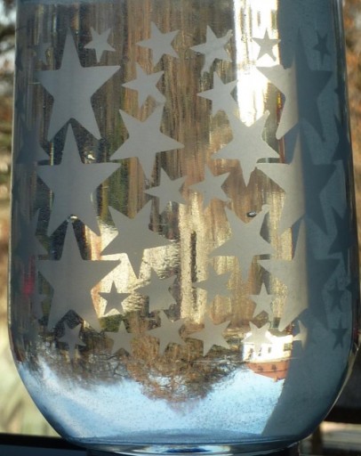 Wytrawiona grafika na szklance czy kubku przypomina piaskowanie.
