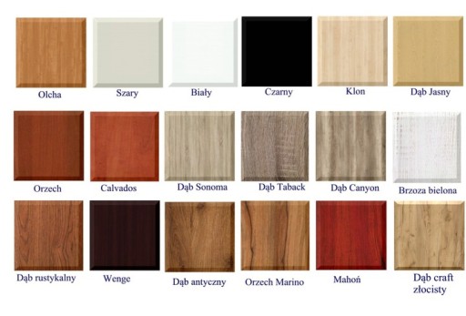 oraz 18 różnych podstaw (w tym sezonie modny venge oraz dąb sonoma jasny i tabak)