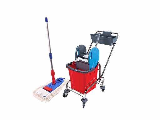 Wózek INTEGRAL posiada wiadro o pojemności 25 litrów, które zostało wykonane z wysokiej jakości tworzywa ABS, charakteryzującego się dużą wytrzymałości na pęknięcia. Wykorzystano w nim prasę szczękową typu down-press, dzięki której proces wyżymania jest lekki. Prasa ta współpracuje z mopami płaskimi, sznurkowymi oraz kentucky. Wózek prowadzimy w wygodny i bezpieczny sposób za pomocą chromowanej rączki do której przymocowano koszyk na zestawy chemii przemysłowej. Wyposażono go w kółka, które są wytrzymałe i stabilne oraz nie rysują podłoża w trakcie jazdy. To wszystko zapewnia nam odpowiedni komfort pracy.