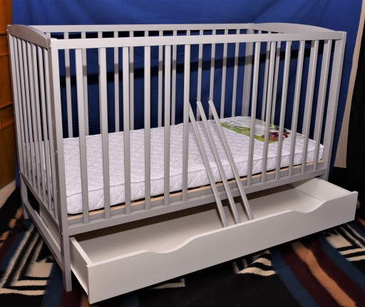 - trzy wyjmowane szczebelki co pozwoli na swobodne wchodzenie i wychodzenie dziecka z łóżeczka,