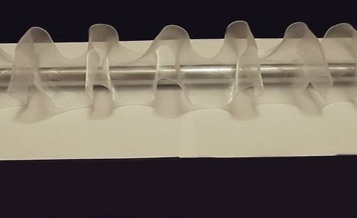 Taśma posiada z tyłu szelki, dzięki którym taśmę można łatwo wsunąć bezpośrednio na karnisz. Pozwala ona zatem na łatwe wieszanie firan i zasłon bez potrzeby zapinania na żabkach.