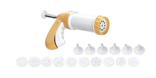 Doskonały do przygotowywania słodkich i słonych ciastek oraz do dekorowania tortów, przystawek, kanapek, zimnych płyt. Zestaw zawiera 10 krążków wyciskających oraz 6 dysz dekorujących. Dekorator został wykonany z wytrzymałego plastiku.