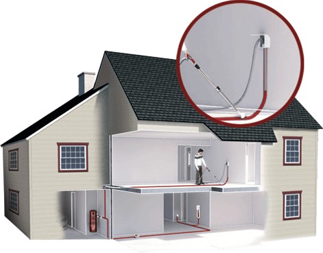 Комплект для установки втягивающегося в стену шланга для пылесоса