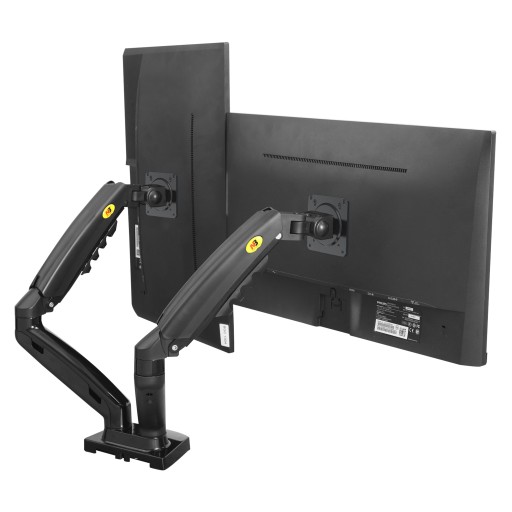 Obrotowy, biurkowy uchwyt do dwóch monitorów LCD LED z pełną regulacją 3D i płynną regulacją wysokości na sprężynie gazowej.
