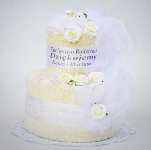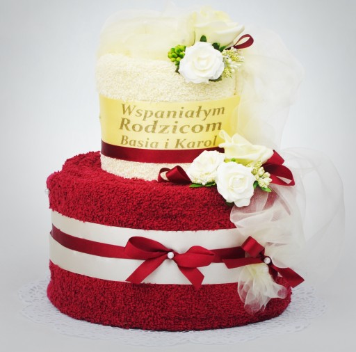 Kolory ręczników oraz dekoracji mogą nieznacznie się różnić od prezentowanych na naszych zdjęciach ze względu na indywidualne ustawienia monitorów oraz światło podczas wykonywania zdjęć. Dekoracje wykonywane są ręcznie w naszej pracowni. Zarówno odcienie wstążek, jak i kwiatków oraz ich kształt może w nielicznych przypadkach delikatnie i nieznacznie odbiegać od widocznych na zdjęciach ze względu na indywidualny charakter wykonywania dekoracji oraz zmiany w dostępnym towarze u dostawców.