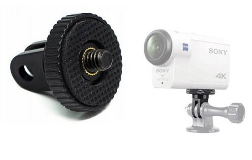 Adapter umożliwia przymocowanie tradycyjnego aparatu lub kamery mocowanego na gwincie 1/4'' na uchwytach przystosowanych specjalnie do kamer GoPro !