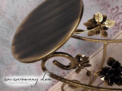 Elegancki stojak na tort wykonany z metalu w kolorze stare złoto.