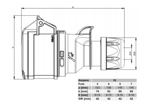 - Wodoszczelność klasy IP 44, gniazda marki PCE – wielokrotnego użytku skręcane nie zalewane, 16A