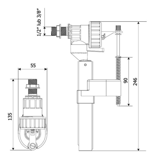 НАПОЛНИТЕЛЬНЫЙ КЛАПАН ДЛЯ ТУАЛЕТА 3/8'