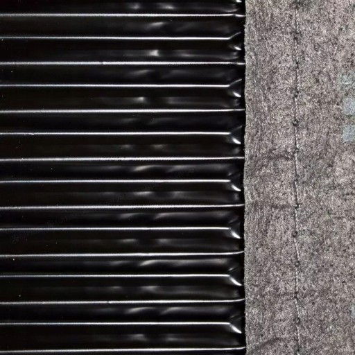 Dwa pasy profilowanego aluminium o grubości 0,14 mm sklejone oraz zszyte z włókniną techniczną nićmi odpornymi na czynniki środowiska; od spodniej strony pokryte przy krawędziach paskami kleju butylowego. Produkt oferowany jest również w wersji z miedzi.
