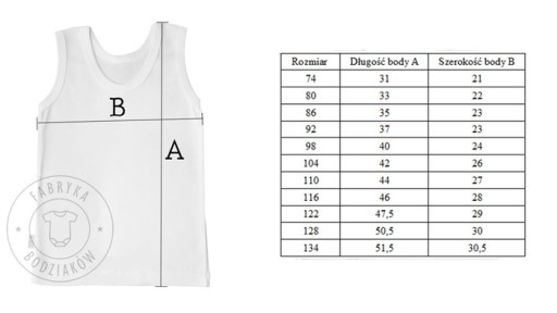 - Podkoszulki dostępne są w rozmiarach od 74 do 134.