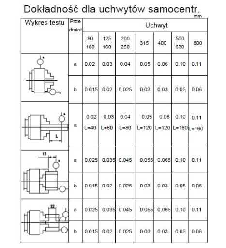 Przedstawiamy dokładności w poszczególnych mocowaniach.