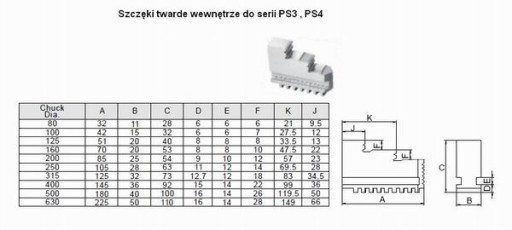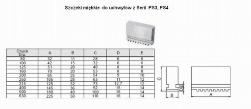 Przedstawiamy rozmiary szczęk zamontowane uchwytach Fuerda w serii PS3 w zestawie, który jest przedmiotem aukcji są szczęki zewnętrzne i wewnętrzne , natomiast szczęki miękkie można dodatkowo dokupić , przedstawiamy ich wymiary ze względu na pytania naszych klientów ,którzy już posiadają podorabiane szczeki i chcieli by mieć pewność sprawdzając wymiary czy posiadane szczeki będą pasowały czy nie .