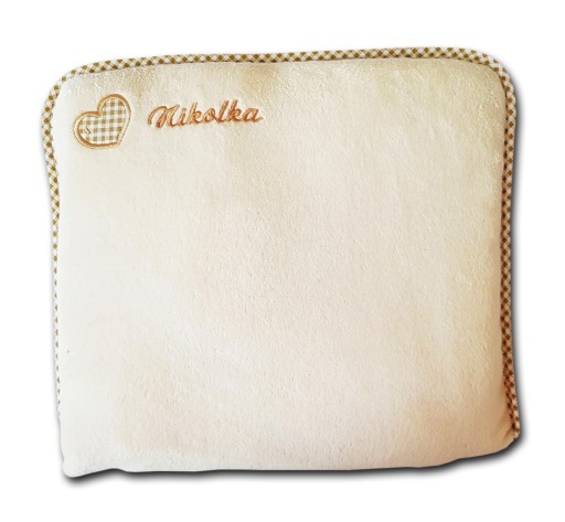 Kocyk jest wykonany z polaru z długim włosem, co powoduje, że haft jest trochę grubszy od haftu na zwykłym kocyku polarowym. Na podusi haftowane jest imię dziecka. Haft imienia na podusi będzie dobrze wyglądał jeżeli imię dziecka nie będzie zbyt długie ( do 8 liter).
