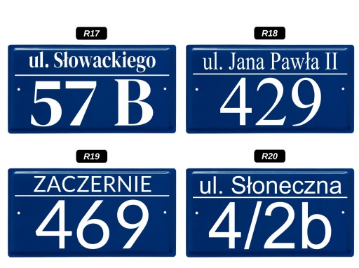 - Kolor tabliczki: Niebieski (RAL 5010)