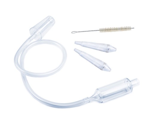 - Aspirator podłączany jest do domowego odkurzacza o mocy 800–1500W. Zredukowana, jednostajna siła ssąca sprawia, że jest on znacznie skuteczniejszy w porównaniu z ustnymi aspiratorami oraz tradycyjnymi gruszkami.