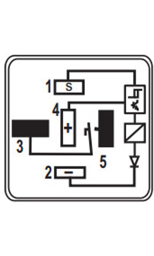 1) Po pojawieniu się sygnału sterującego (+12V) na wejściu 1 przekaźnik zewrze styki robocze 3 i 5