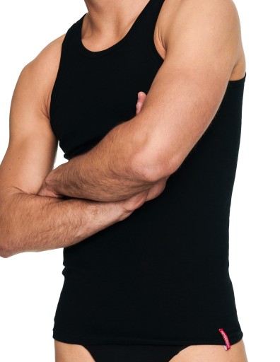 Koszulka męska na ramiączkach z linii BASIC LINE wykonana z wyjątkowo miękkiej bawełny, dzięki czemu świetnie dopasowuje się i przylega do ciała, podkreślając sylwetkę i pozostawiając uczucie komfortu.