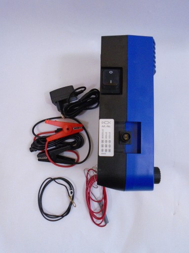 - W składzie: kabel zasilający 12V z zaciskami ze stali nierdzewnej, zasilacz 230V i przewody uziemiające.
