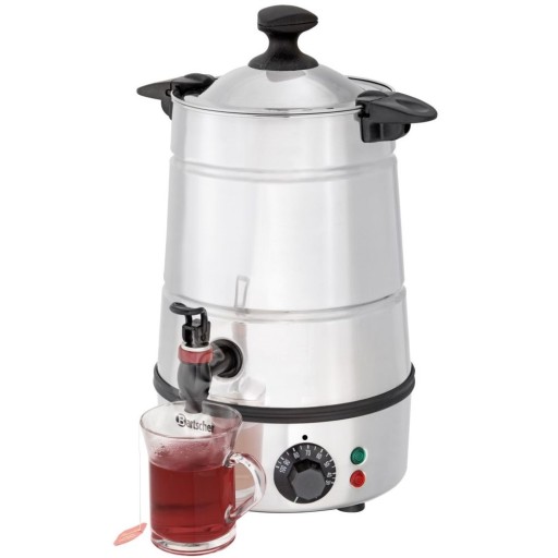 Warnikdo wody o pojemności 5 l posiadający nierdzewną obudowę i pokrywę. Regulacja temperatury w zakresie od 30 do 100ºC pozwala na utrzymywania właściwej temperatury wody przeznaczonej do przygotowania herbaty, kawy oraz napojów typu instant.