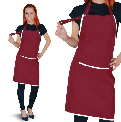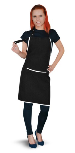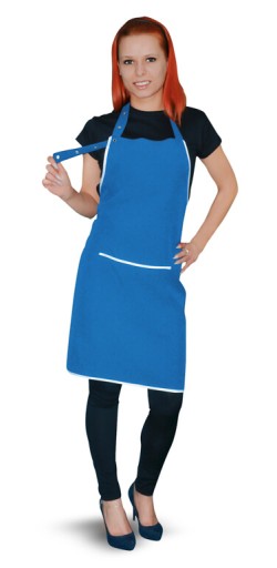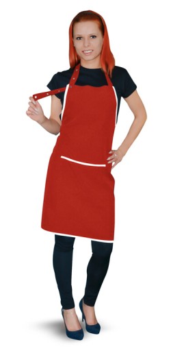 Fartuch został obszyty ozdobną lamówką w celu wzmocnienia oraz poprawie wizualnej produktu.