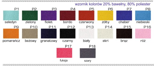 Skład: 80% poliester, 20% bawełna, gramatura: 180g/m2