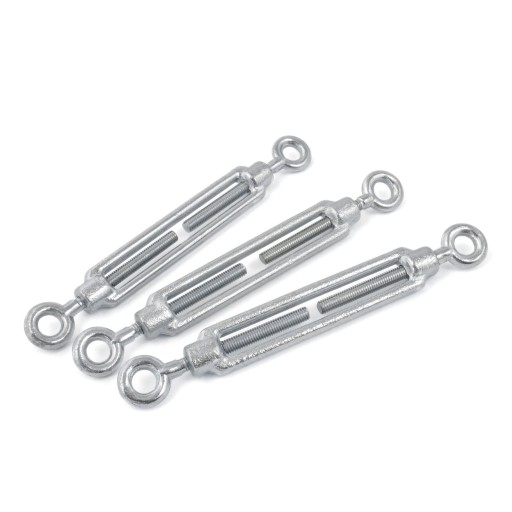 Regulacja naprężenia śrub rzymskich możliwa jest poprzez wkręcanie przeciwnie skierowanych do siebie gwintów znajdujących się w korpusie.