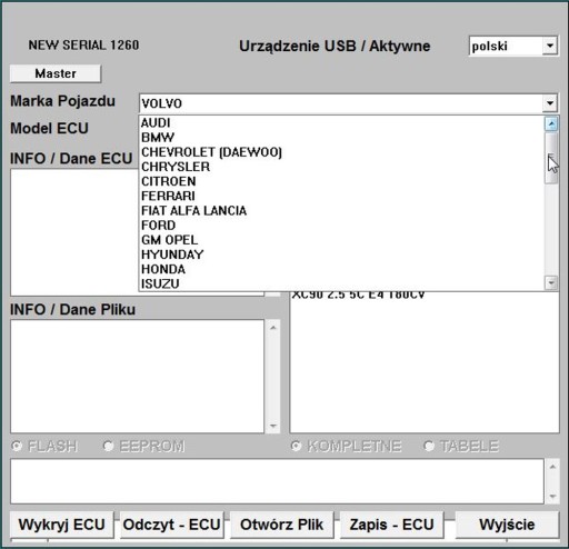 URZĄDZENIEM ZMODYFIKUJEMY WSADY W TAKICH STEROWNIKACH JAK: BOSCH: EDC15, EDC16, MEX.X, DELCO, DELPHI, SIEMENS, MARELLI I WIELE INNYCH WYMIENIONYCH W DALSZEJ CZĘŚCI OPISU.