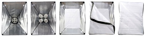 ✔ Softboxy wykonane zostały z najwyższej jakości tworzywa. Od wewnątrz wykończone są srebrną, odblaskową powierzchnią — nie tylko zapobiega "uciekaniu" światła do tyłu i na boki, ale także odbija je w pożądanym kierunku. Sprawia to, że do fotografowanego obiektu trafia zwielokrotniona ilość światła, rozproszonego przez znajdujący się z przodu materiał dyfuzyjny. Od zewnątrz softboxy są matowo czarne, dzięki czemu nie odbijają światła z innych lamp.