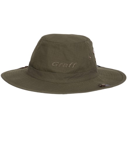 Zapewnia doskonałą ochronę przed słońcem, zarówno twarzy jak i karku. Wykonany z bawełny rip stop, która jest przewiewna, bardzo mocna, odporna na rozdarcia. Rondo kapelusza można podwinąć po bokach i przypiąć na zatrzaski. Z boku haftowane logo GRAFF.
