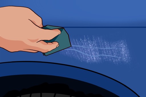 Uszkodzoną powierzchnię należy oczyścić, wyszlifować i usunąć z niej resztki starego lakieru lub korozję. Następnie należy pozbyć się z niej kurzu i odtłuścić naprawiany obszar. Podłoże musi być czyste, suche i wolne od tłuszczu. W przypadku występowania korozji, trzeba użyć podkładu na rdzę. Zarysowania i nierówności należy wypełnić szpachlówką. Wstępnie wyrównać naprawianą powierzchnię papierem na sucho o gradacji 400.