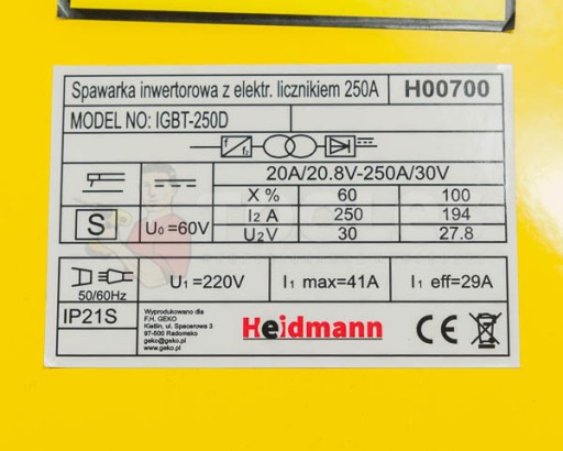 - ANTI STICK - funkcja zapobiegająca przyklejaniu się elektrody do spawanego materiału.