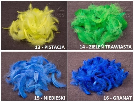 Jeden komplet zawiera około 190 piórek dekoracyjnych w wybranym kolorze!