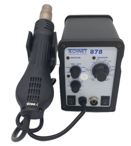 Spawarka do plastików z płynną regulacją temperatury i nadmuchu powietrza oraz lutownicą grotową o symbolu - Technet 878