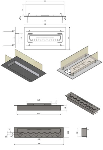 Biokominek - gotowy wkład w mebel INOX 600mm